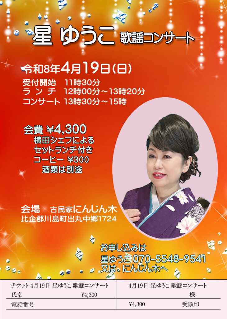 ・4月19日(日) 「星ゆうこ歌謡コンサート」を開催します。